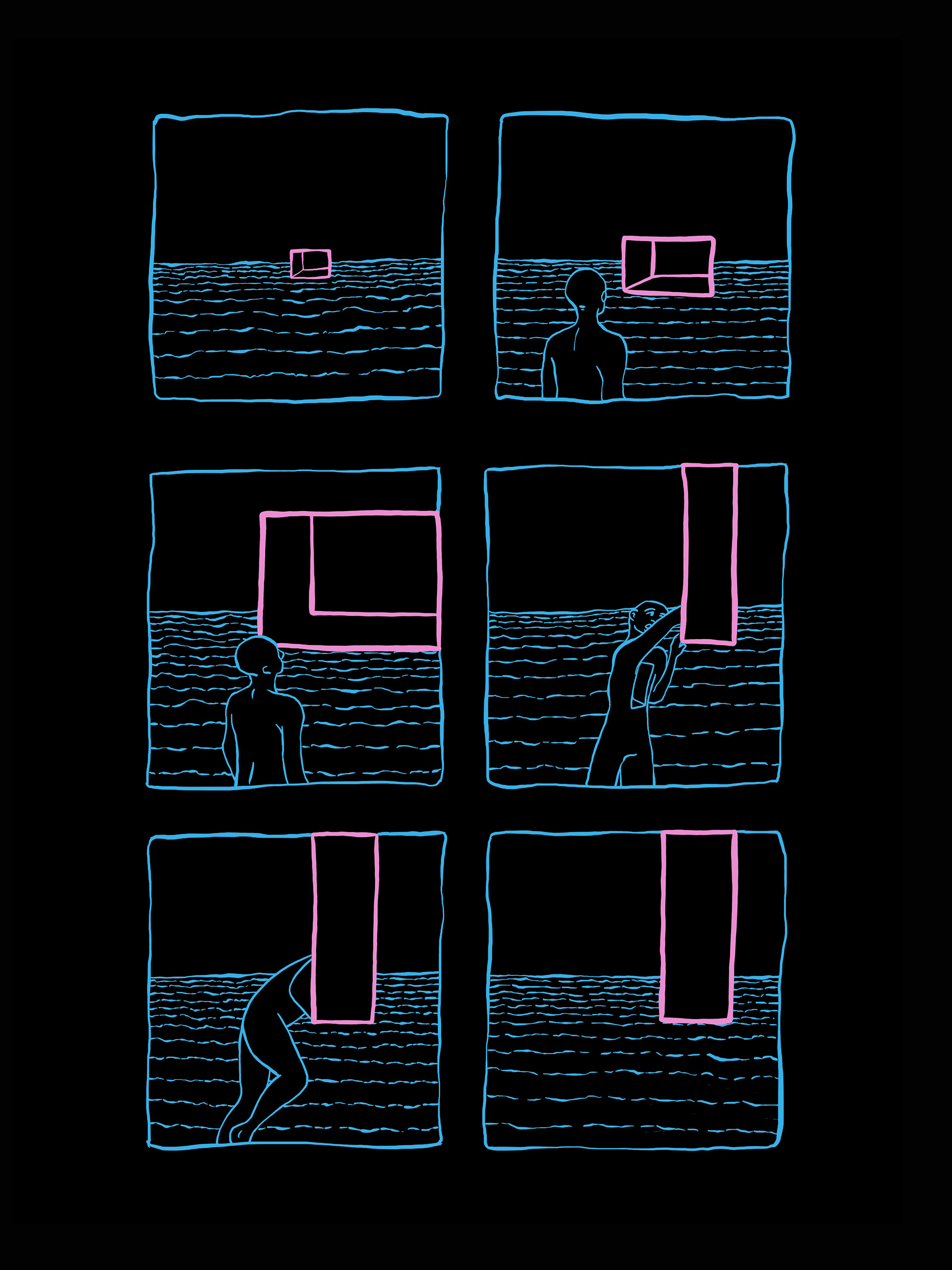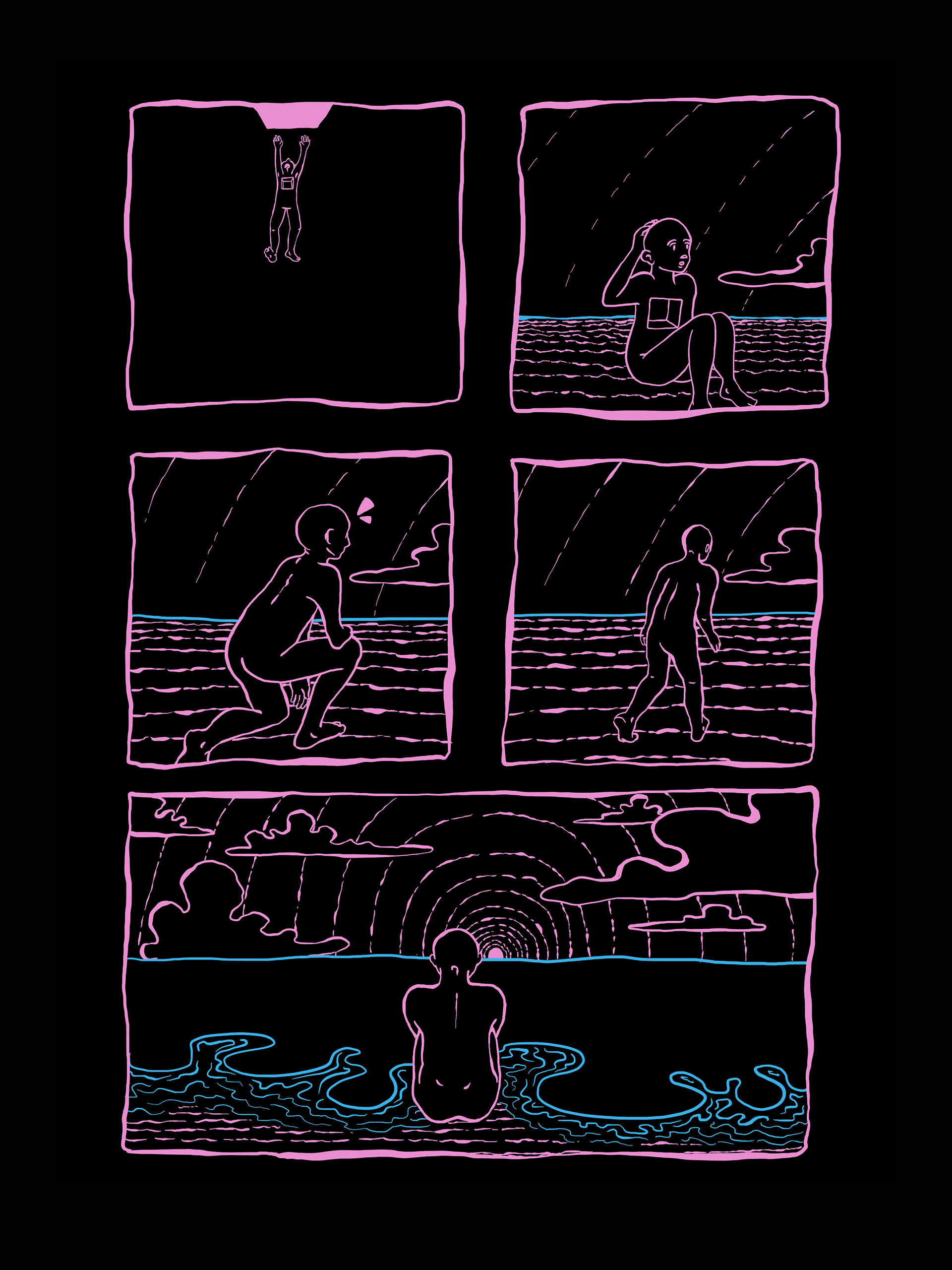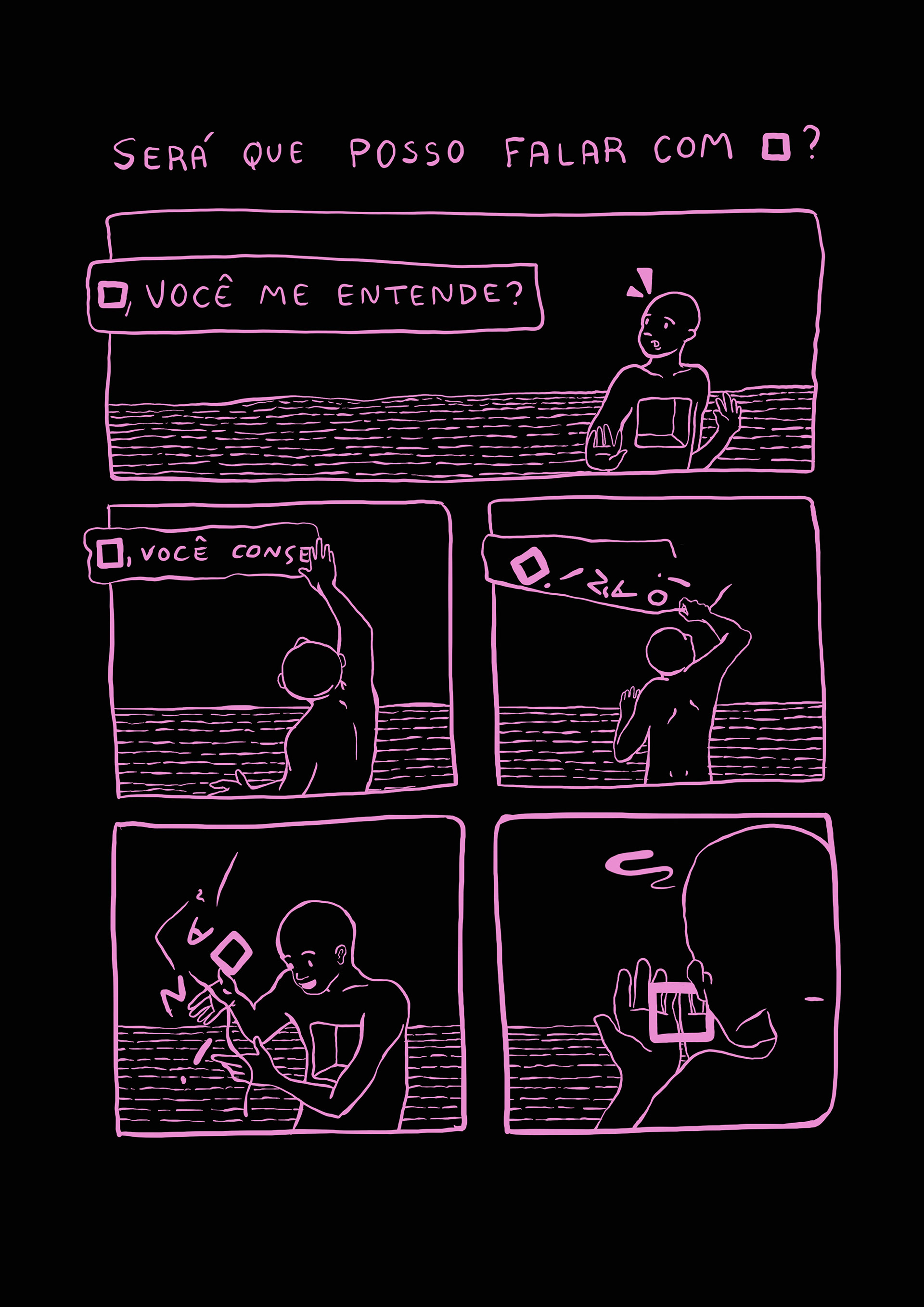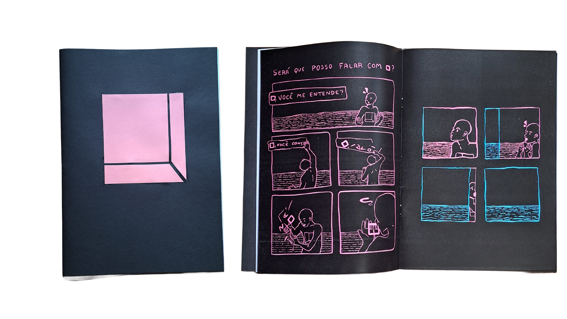 A HQ "ENTRE", de Ana Uviedo, nasce de uma questão universal: o que é existir? Na narrativa, um personagem ( ■ ) é criado, e por isso todo o universo ao redor se inventa para ele ter onde estar, brincar e se desenvolver.